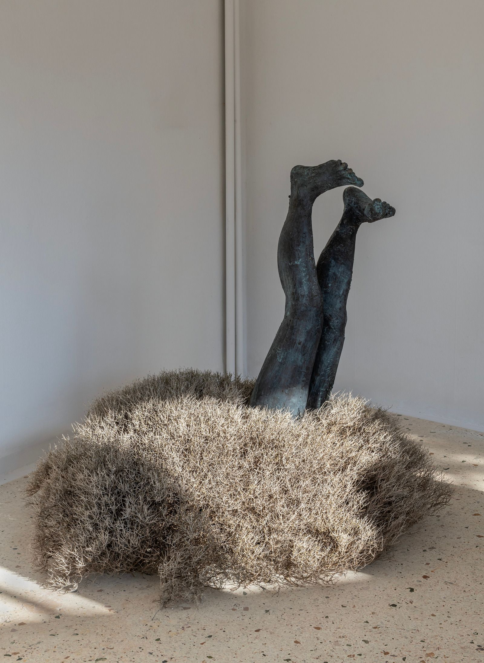 Η έκθεση «Θέρος, τρύγος, πόλεμος» είναι η πρώτη ατομική του Αργύρη Ραλλιά στην Ελλάδα. Τα δώδεκα έργα που παρουσιάζει στο εργαστήριό του στα Πετράλωνα αναφέρονται σε τραυματικές εμπειρίες και περιβαλλοντικές καταστροφές.
