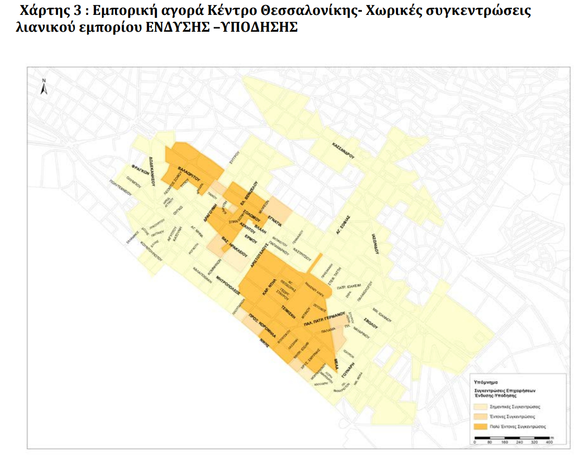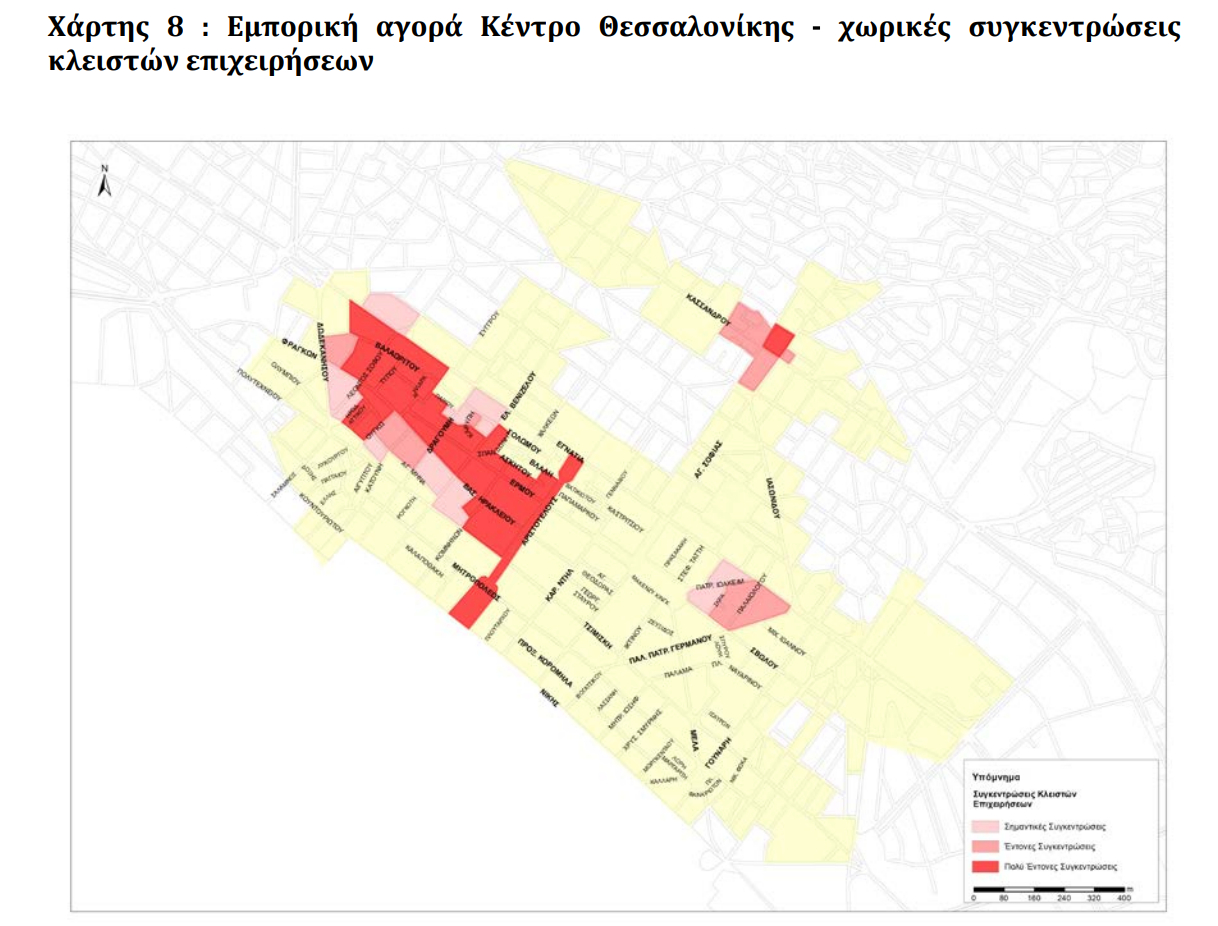 Από τα στοιχεία και τη χωρική κατανομή των καταστημάτων προκύπτει πως το εμπορικό κέντρο της Θεσσαλονίκης βρίσκεται σε μια φάση αργής μετάβασης.