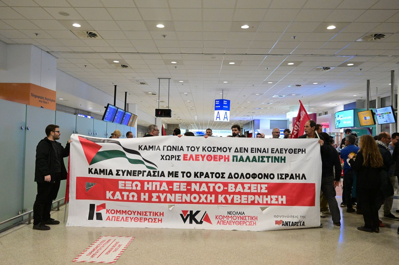 Οι ακτιβιστές αναμένεται να φτάσουν στο στο αεροδρόμιο “Ελευθέριος Βενιζέλος” το απόγευμα της Δευτέρας αλλά ήδη από το μεσημέρι, πλήθος κόσμου βρίσκεται εκεί για να τους υποδεχθεί κρατώντας πανό με συνθήματα υποστήριξης καθώς και παλαιστινιακές σημαίες. Aνάμεσα στον κόσμο που έσπευσε για να τους υποδεχθεί βρίσκονται και στελέχη της αριστεράς, όπως ο Νίκος Φίλης και ο Ευκλείδης Τσακαλώτος.