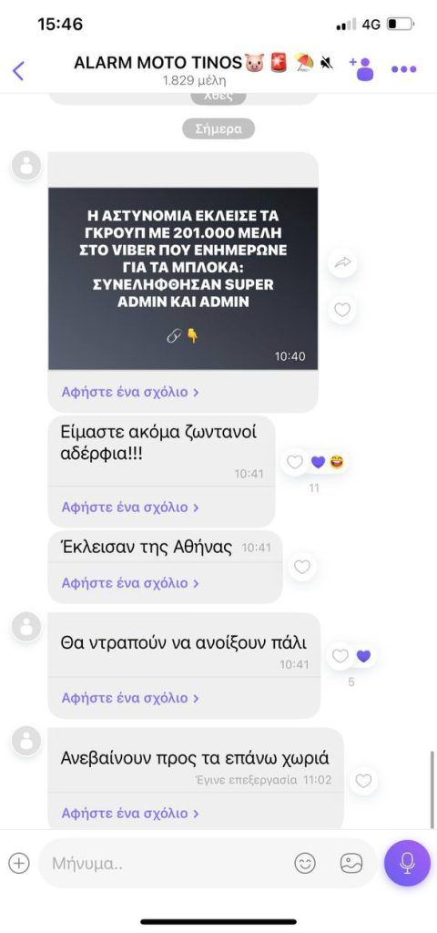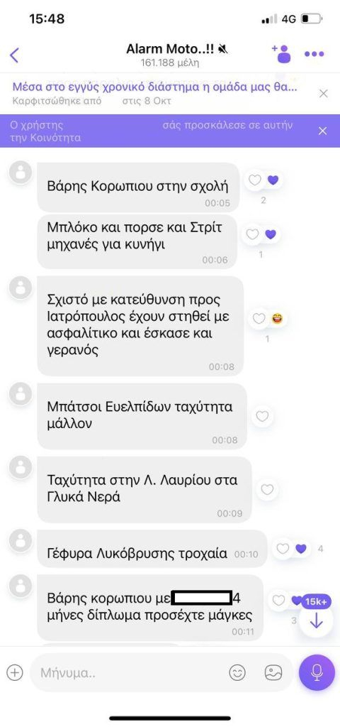Νέα στοιχεία και μηνύματα έρχονται στο φως για τις παράνομες διαδικτυακές κοινότητες με περισσότερα από 200.000 μέλη, υπόθεση που εξιχνίασε η ΕΛ.ΑΣ. Μέσω των ομαδικών συνομιλιών σε μέσα κοινωνικής δικτύωσης, τα μέλη της ενημέρωναν τους οδηγούς για τα μπλόκα της Τροχαίας σε Αθήνα και Θεσσαλονίκη αλλά και σε νησιά.